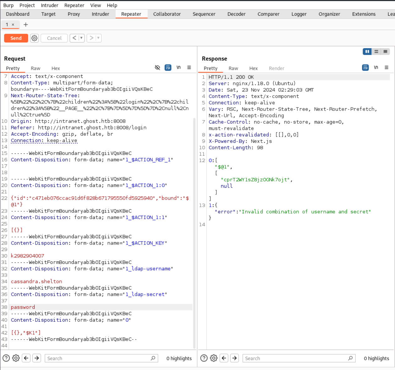 SMB 10.10.11.24 445 DC01 [-] ghost.htb\null: STATUS_LOGON_FAILURE