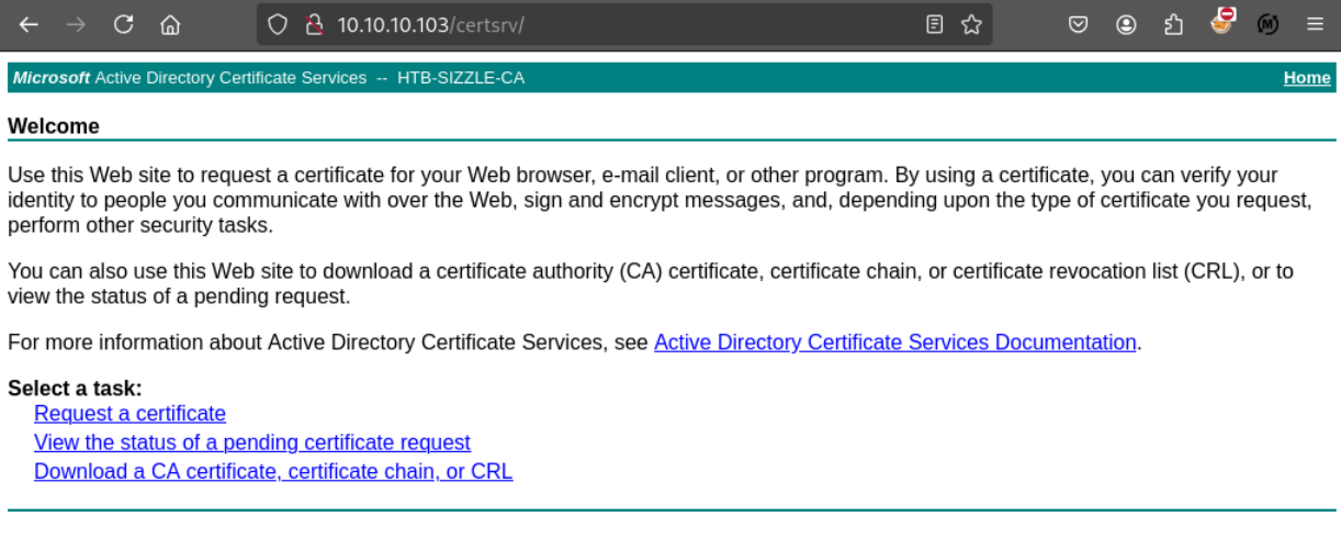 SMB 10.10.10.103 445 SIZZLE CertEnroll Active Directory Certificate Services share