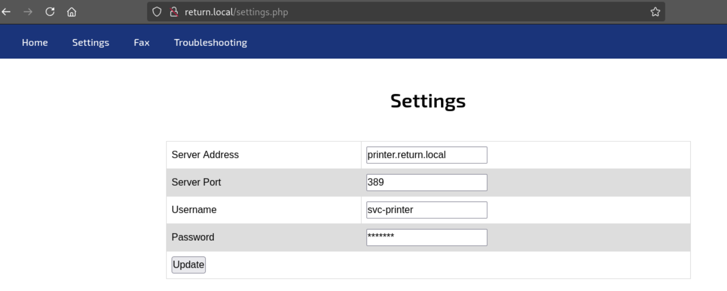 LDAP 10.10.11.108 389 PRINTER [+] return.local\svc-printer:1edFg43012!! (Pwn3d!)