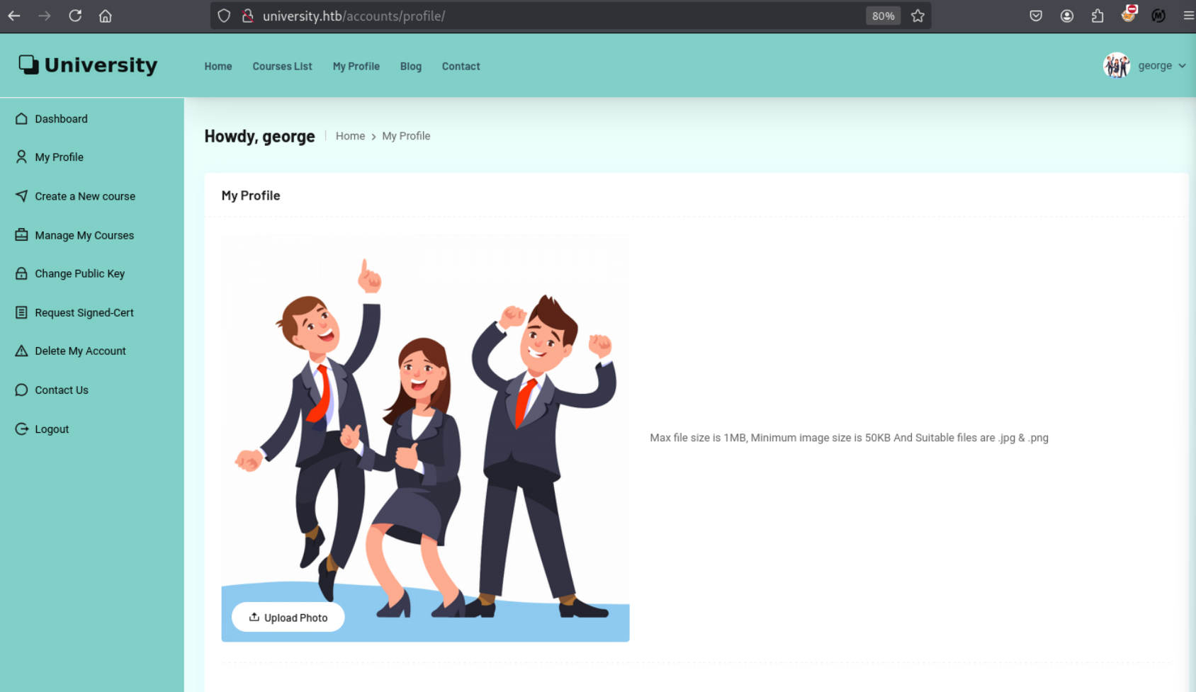 将university.htb加入/etc/hosts,访问80服务,来到一个大学课程网站。